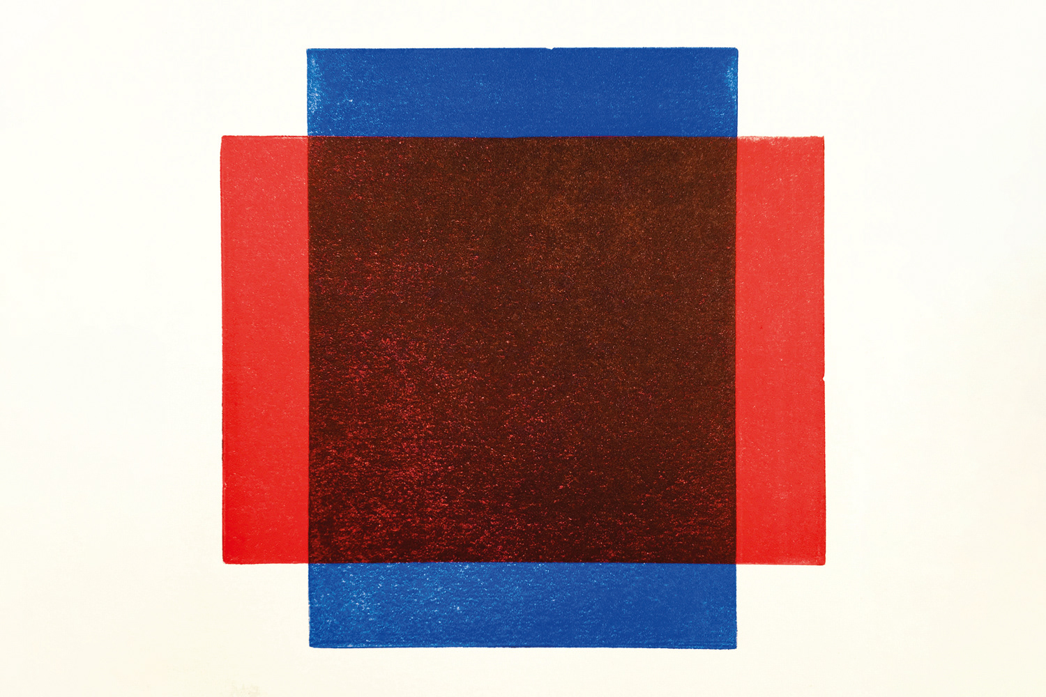 First go at using the transparancy of some inks to create new colors. Used the same lino rectangular block what results in a nice square. Printed on my new Fome printing press with rollers. Paper size: 20 x 20 cm Printed surface: 14 x 14 cm