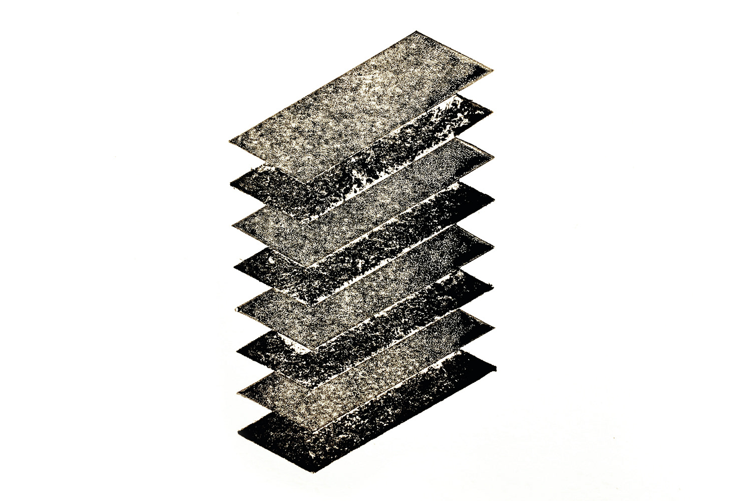 STACK A tetra print exploring the effect of tearing away the shiny surface as well as cutting out a shape. This resulted in a wonderful 3D effect