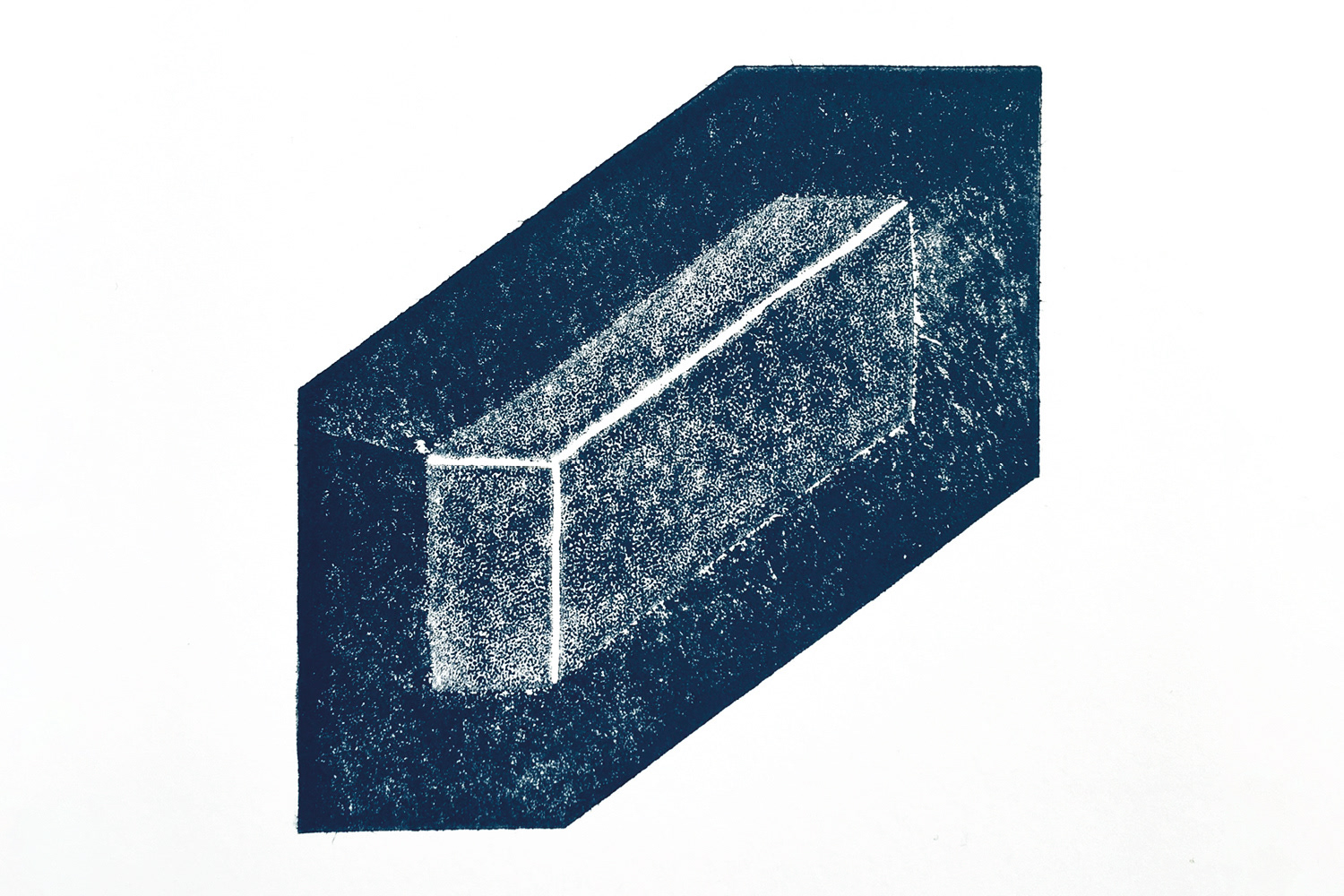 WITHINAn early tetra print exploring the possibilities of taking away the shiny surface as well as making scratched lines. Printed as a relief print with dark blue waterbased ink.