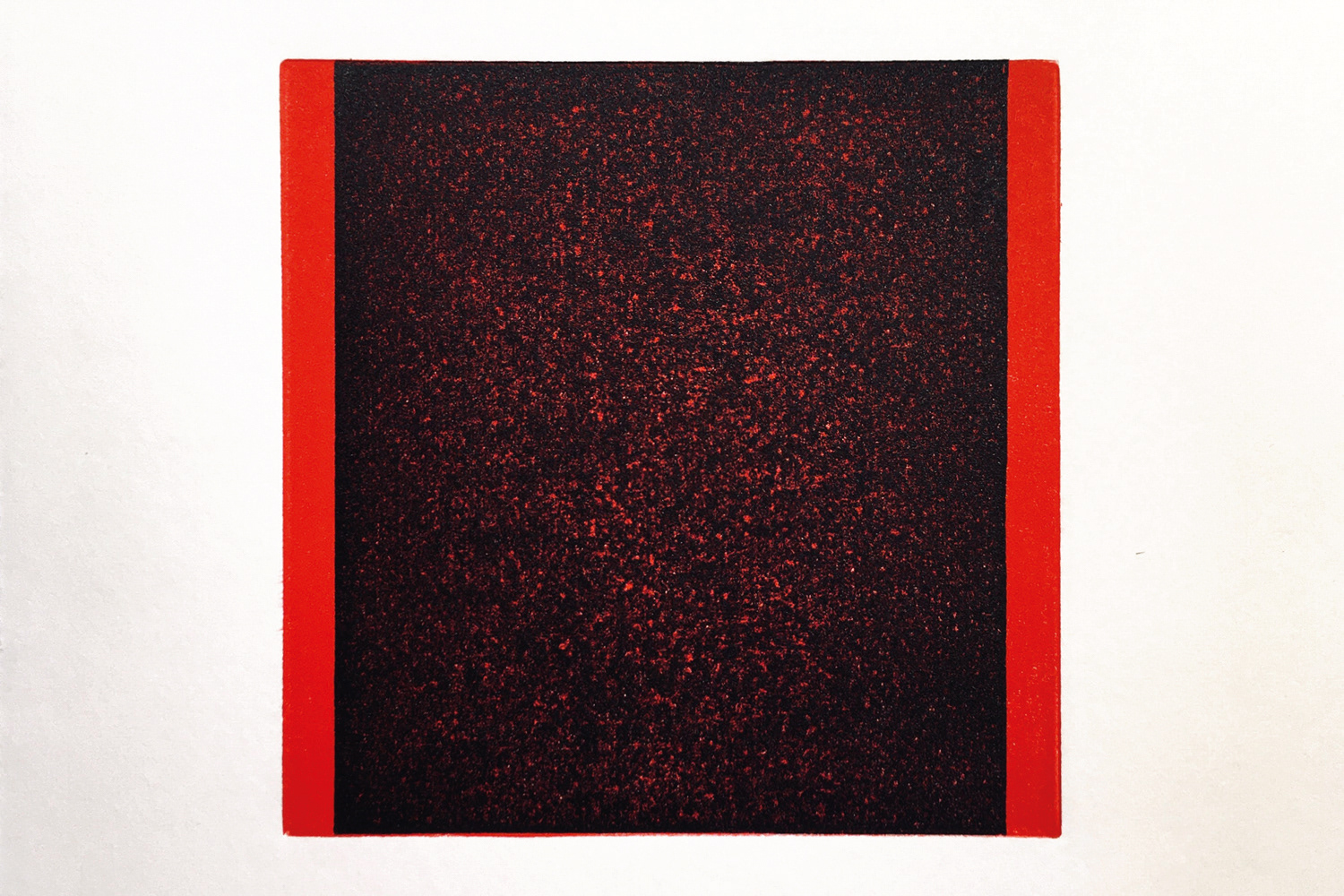 Red background printed with lino, black surface printed on top with tetra. Paper size: 20 x 20 cm Printed surface: 11,5 x 11,5 cm